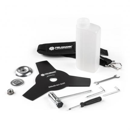 Kromě strunové hlavy stroj umožňuje také nasazení ocelového trojzubce, jehož pomocí lze sekat mladé náletové dřeviny či jiné odolnější rostliny. Dodávaná strunová hlava je vybavena dvěma strunami s poloautomatickým posunem.