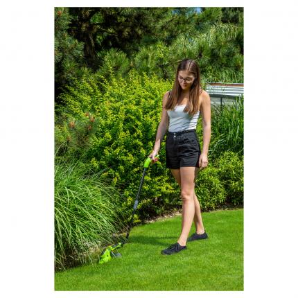 Pokud si libujete v precizně upravených zahradách, česká firma FIELDMANN má pro vás nepostradatelného pomocníka. Její nůžky jsou vhodné na zastřihování okrajů trávníku i k tvarování okrasných dřevin. Li-Ionová baterie, která tento nástroj pohání, vydrží na jeden zátah až 30 minut. Získáváte tím dostatek času k doladění každého drobného detailu při úpravě zahrady. Praktickým prvkem nůžek je světelný indikátor baterie, který za vás hlídá stav nabití.