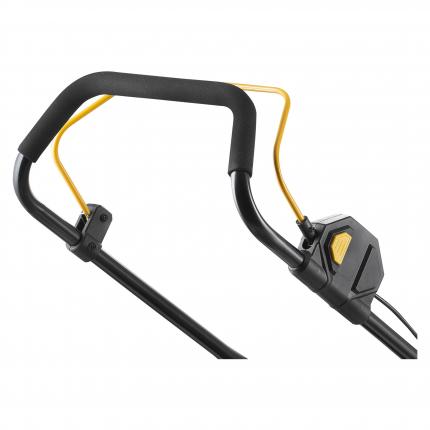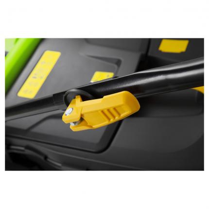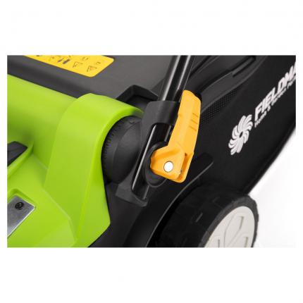 Bezpečnostní spínač brání náhodnému zapnutí čepele a robustní konstrukce z odolného plastu je zárukou dlouhé životnosti. Pro perfektní manipulaci se strojem je sekačka osazena robustními kolečky z odolného plastu.