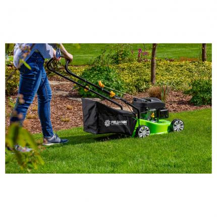 Součástí je i odnímatelný látkový koš o objemu 40 l, můžete si tedy vybrat, zda chcete trávu hned během sekání sbírat nebo využijete možnosti zadního odhozu. Díky šasi z kvalitního plastu si sekačka udržela nízkou hmotnost, pouhých 18 kg, což zaručuje jednoduchou manipulaci. Pro snadné skladování je možné sklopit madlo a stroj tak nezabírá příliš mnoho místa ani třeba při převozu v kufru auta.