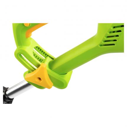 Výkonný elektrický vyžínač určený pro práci na větších zahradách. Příkon elektromotoru 1400 W umožňuje, kromě použití strunové hlavy, také nasazení ocelového trojzubce. Pomocí tohoto trojzubce lze sekat mladé náletové dřeviny či jiné odolnější rostliny.